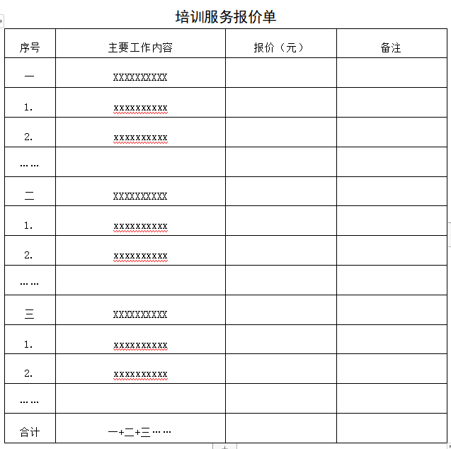 附件:报价格式培训服务报价单.docx