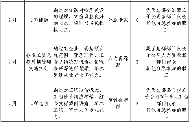 指定为员工心理健康课,需推荐并邀请业内一流专业讲师对集团本部职工开展心理建设指导,引导职工建立积极向上的工作、生活心态。