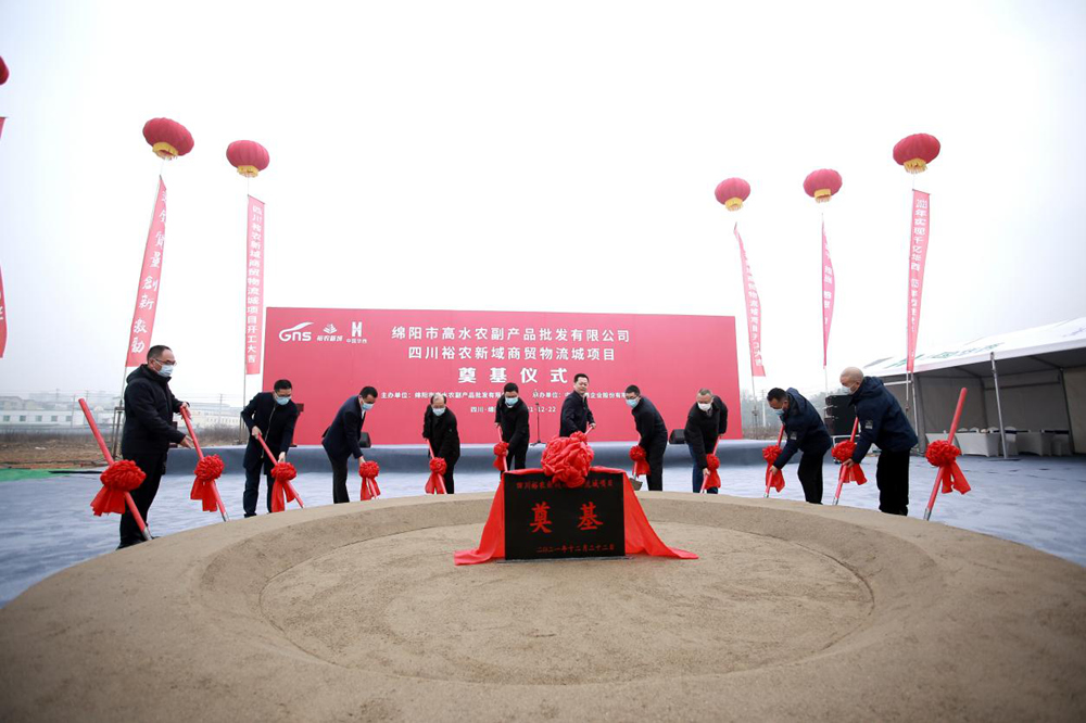 四川裕农新域商贸物流城位于绵阳市城北农副产品物流产业园,项目总规划用地面积约500亩,总建筑面积约40万㎡,计划投资22亿元,分六期开发,是高农司倾力打造的集大宗农产品交易、地标农产品展示、冷链仓储、加工配送、电商中心、中央大厨房、综合服务配套、智慧运营等产业链功能的第四代智慧型农批交易大平台。项目以农批产业链为依托,与城市发展相融合,形成以产促城,以城兴产,产城融合的发展模式。项目统一规划分期实施,其中一期、二期、三期先行统一开发建设,并于2021年12月22日奠基开工,计划2023年上半年投入运营使用,项目规划用地面积约129亩,总建筑面积约11.7万平方米,主营包括大宗蔬菜、干调、副食品、地标特色农产品等业态的批发交易、展示。截止目前,项目已完成一期1#、2#楼基础施工,正进行主体施工;3#楼正进行地基开挖工作;二期5#楼正进行基础浇筑施工,4#、6#楼正进行地下室开挖工作。